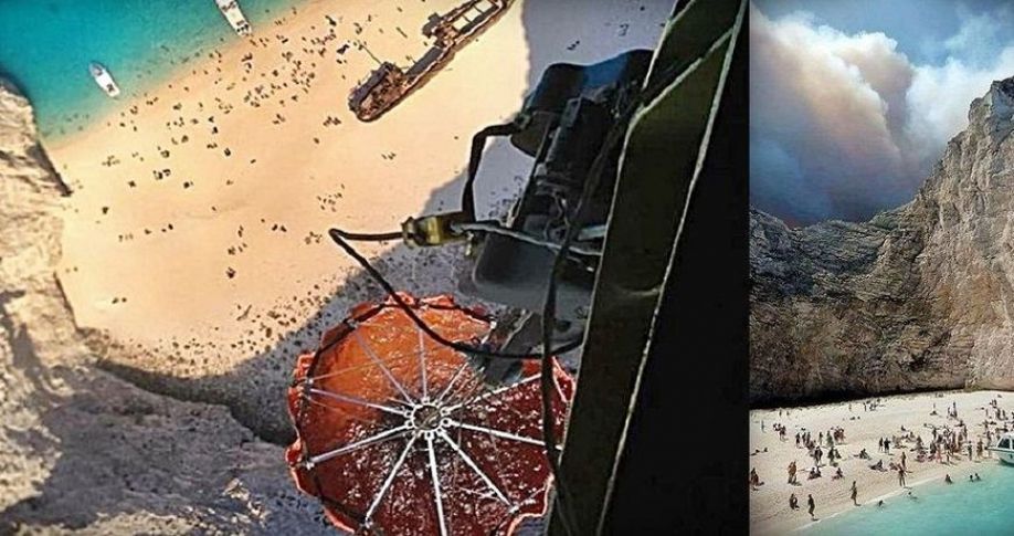 • Η κεντρική φωτογραφία είναι από το το πλήρωμα ενός στρατιωτικού ελικπτέρου CHINOOK CH47 το οποίο φωτογράφισε το «Ναυάγιο» της Ζακύνθου, αφού είχε κάνει ανεφοδιασμό στον ειδικό σάκο-κουβά που φέρει στο κάτω τμήμα του. Δίπλα φωτογραφία από τον καπνό της φωτιάς. Οι φωτογραφίες από εδώ (imerazante.gr)