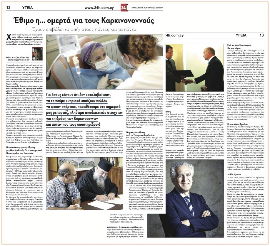 Το «βρίξε να περάσουμε», το «φάε τζιαι σου τζιαι σιώπα», το «είδες τι έπαθαν εκείνοι που τόλμησαν να μιλήσουν;», είναι στην ημερήσια διάταξη. Όλοι οι πιο πάνω συμπορεύονται μεθοδικά ώστε να διαλύσουν αρχικά τις Κρατικές Ογκολογικές Υπηρεσίες και ότι άλλες υπηρεσίες χρειάζονται οι Καρκινοπαθείς (βλέπε διάλυση της Κλινικής του Μαστού) και ακολουθούν τα Χειρουργικά, τα Πνευμονολογικά, σύντομα η Αιματολογική Κλινική και πάει λέγοντας, μέχρι που να διαλύσουν και ξεπουλήσουν εντελώς το Γεν. Νοσοκομείο Λευκωσίας.