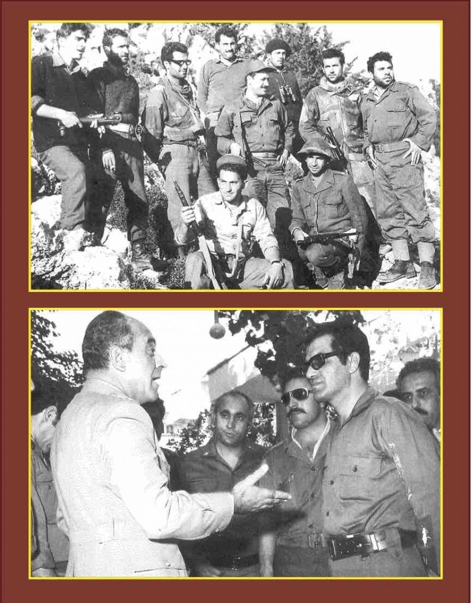 Φωτογραφία: Πάνω, ο Παντελάκης Πανταζής με τον Νίκο Κόσιη και άνδρες της διλοχίας του στον Πενταδάκτυλο, τον Μάρτιο του 1964. Κάτω, δέκα χρόνια αργότερα -Οκτώβριος 1974- ο Παντελάκης Πανταζής με τον Αρχηγό της Εθνικής Φρουράς, Υποστράτηγο Ευθύμιο Καραγιάννη.