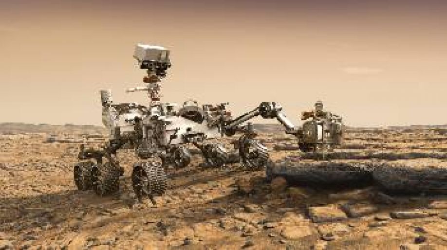 Φωτογραφία: Καλλιτεχνική απεικόνιση του ρόβερ της αποστολής «Άρης 2020», την ώρα που εξετάζει με επιστημονικά όργανα κάποιο βράχο στην επιφάνεια του κόκκινου πλανήτη