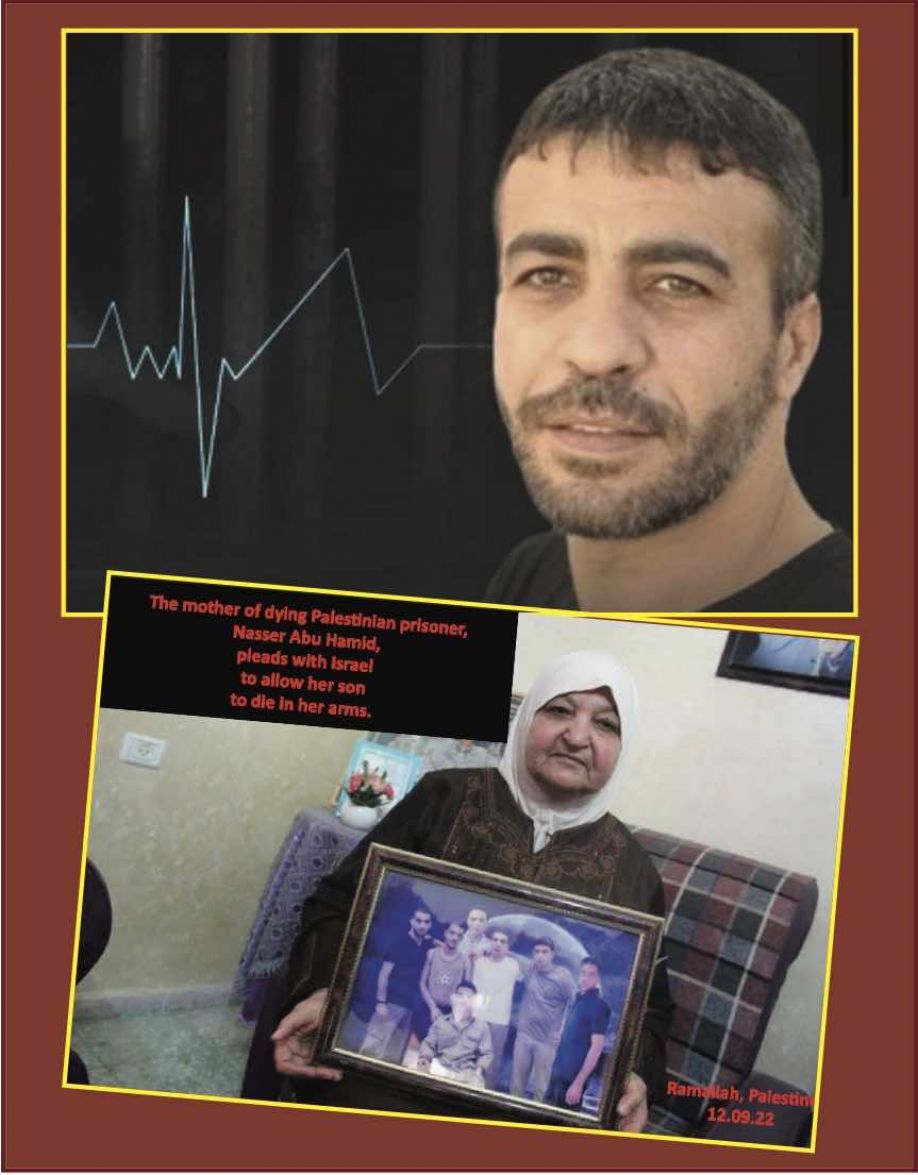 Η μητέρα του, η τραγική φιγούρα της οικογένειας, είναι αυτή που κουβαλάει όλον τον πόνο για τα παιδιά της. Ποια μητέρα στον κόσμο έχει θάψει έναν γιο της και έχει άλλους 3 στην φυλακή, ισόβια καταδικασμένους, ο ένας εκ των οποίων είναι ετοιμοθάνατος; Ποια μάνα θα καθόταν με σταυρωμένα χέρια μπροστά στα βασανιστήρια των γιών της; H Latifa (φωτό κάτω), προχθές, έκανε δημόσια έκκληση, στο κατοχικό κράτος του Ισραήλ με δάκρυα στα μάτια να δει τον γιό της, Nasser, για τελευταία φορά πριν πεθάνει κι αυτός. Νιώθει πως κάτι έχει να της πει, όπως τόνισε η ίδια. Το ίδιο ζητούν και τα αδέρφια του, τα οποία βρίσκονται ήδη σε απεργία πείνας για να ασκήσουν πιέσεις στο κράτος Απαρτχάιντ του Ισραήλ με μόνο αίτημά τους απλά να δούνε τον αδερφό τους για τελευταία φορά.