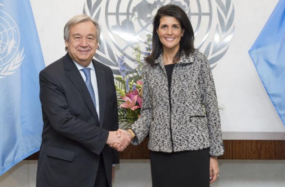 Η πρώτη συνάντηση μεταξύ της Χέιλι και του Γκουτέρες γίνεται σε μια χρονική περίοδο κατά την οποία τα αμερικανικά ΜΜΕ κάνουν λόγο για ένα προεδρικό διάταγμα, που θα στερήσει από το διεθνή οργανισμό μια οικονομική βοήθεια εκ μέρους των ΗΠΑ ύψους πολλών δισεκατομμυρίων δολαρίων.