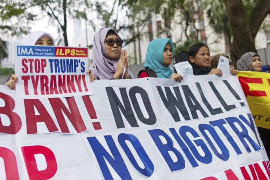 Στο Βερολίνο και το Παρίσι, περίπου χίλιοι διαδηλωτές κατήγγειλαν το διάταγμα, η εφαρμογή του οποίου εμποδίστηκε το βράδυ της Παρασκευής από ομοσπονδιακό δικαστή του Σιάτλ. Στη γερμανική πρωτεύουσα, οι διαδηλωτές συγκεντρώθηκαν στην Πύλη του Βανδεμβούργου, όπου βρίσκεται επίσης η αμερικανική πρεσβεία.