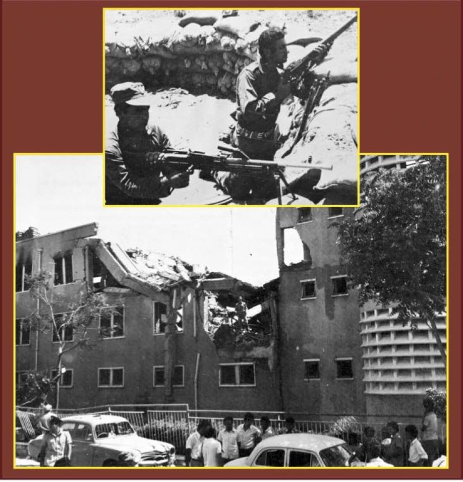 Φωτογραφίες: Έργα και ημέρες της ΕΟΚΑ Β' - Πάνω: Ένστολοι άνδρες της ΕΟΚΑ Β' -με τα διακριτικά της οργάνωσης- σε δράση κατά την εκδήλωση του πραξικοπήματος στις 15 Ιουλόυ 1974. Κάτω: Το αποτέλεσμα της βομβιστικής επίθεσης από άνδρες της ΕΟΚΑ Β' στον κεντρικό Αστυνομικό σταθμό Λεμεσού.