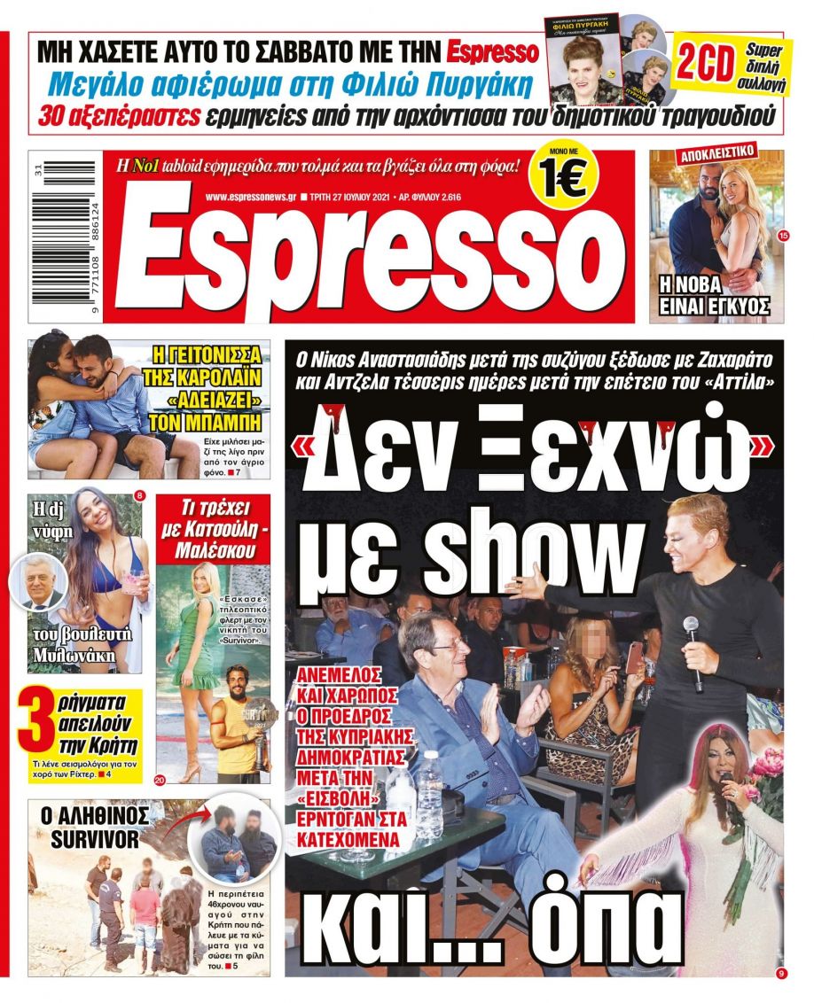 Δικαιολογημένα δε, και εύστοχα κι αυτά που του έγραψε η αθηναϊκή Espresso, μια γνωστή κουτσομπολίστικη εφημερίδα: «Το να εμφανίζεται στο “Άλσος” ο πρόεδρος της Κυπριακής Δημοκρατίας, τη στιγμή που το νησί “βράζει” από τις συνεχόμενες τουρκικές προκλήσεις, ε αυτό “χτυπά” αν μη τι άλλο άσχημα». Για να προσθέσει: «Και δεν ήταν μόνο αυτό! Και να τα παλαμάκια από τον πρόεδρο Αναστασιάδη και να τα γελάκια της συζύγου του την ώραπ ου ο Ζαχαράτος τραγουδούσε μπροστά στο... τραπέζι τους!... Γιατί, πώς να το κάνουμε; Είναι προκλητικές οι εικόνες από το “Άλσος” με αρνητικο πρωταγωνιστή τον κύριο Αναστασιάδη...»