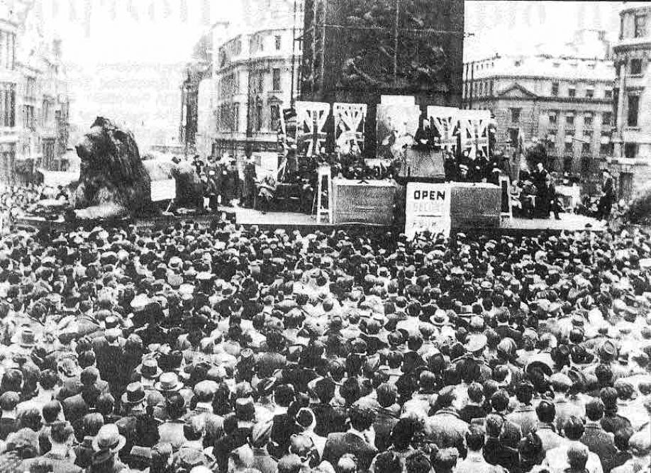 Φωτογραφία: Μεγάλη Βρετανία, 1944: Χιλιάδες Λοδρέζοι συγκεντρώθηκαν στην πλατεία Τραφάλγκαρ, απαιτώντας από την κυβέρνηση Τσιέρτσιλ να ανοίξει το δεύτερο μέτωπο. Φευ, όμως· αυτό άνοιξε μόλις στις 6 του Ιούνη 1944, με την απόβαση στη Νορμανδία. Όταν δηλαδή η έκβαση του πολέμου είχε πια ορστικά κριθεί από τα απανωτά κτυπήματα που έφερε ο Κόκκινος Στρατός στη Φασιστική Γερμανία!