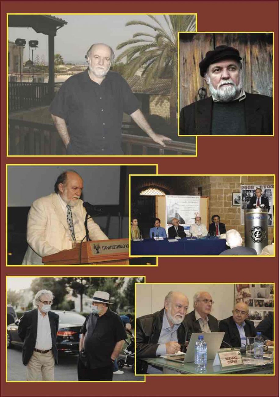 Φωτογραφική αποτύπωση: Πάνω, ο Μιχάλης Πιερής στο Αρχοντικό της Αξιοθέας, στο χώρο που δημιούργησε το Πολιτιστικό Κέντρο και το Θεατρικό Εργαστήρι του Πανεπιστημίου Κύπρου. Στο κέντρο σε δύο δράσεις κατά το «Έτος Παύλου Ξιούτα» του 2008. Αριστερά κύριος ομιλητής στην επετειακή εκδήλωση για τα 100 χρόνια από τη γέννηση του Παύλου Ξιούτα (2 Ιουλίου 2008) και δεξιά στο προεδρείο της Ημερίδας Λαογραφίας, της οποίας ήταν συντονιστής, αλλά και εισηγητής σε μια θεματική ενότητα, με τον τότε υπουργό Παιδείας στο βήμα (29 Νοεμβρίου 2008). Κάτω αριστερά ο Μιχάλης Πιερής με τον Καθηγητή Κώστα Γουλιάμο, τέως πρύτανη του Ευρωπαϊκού Πανεπιστημίου Κύπρου και πρόεδρο του «Ιδρύματος Λαογραφίας & Αγροτικής Ζωής “Χρίστος Κουρτελλάρης”», κατά τα εγκαίνια του οικήμτος του Ιδρύματος στις 30 Μαΐου 2021 και δεξιά στο βήμα της Επιστημονικής Ημερίδας για τα 100 χρόνια παό τη γέννηση του Χρίστου Κουρτελλάρη, ως εισηγητής σε μια θεματική ενότητα, στις 16 Νοεμβρίου 2019. Δίπλα του ο Καθηγητής Γιώργος Μαργαρίτης και ο πρώην πρόεδρος της Βουλής Γιαννάκης Ομήρου, εισηγητές επίσης στην εν λόγω Ημερίδα. Σημειώνεται ότι την έκδοση της Επετηρίδας για το «2008 - Έτος Παύλου Ξιούτα», ανέλαβε το «Ίδρύμα Λαογραφίας & Αγροτικής Ζωής “Χρίστος Κουρτελλάρης”».