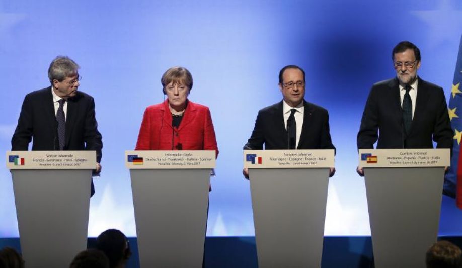 Οι ηγέτες της Γαλλίας, της Γερμανίας, της Ισπανίας και της Ιταλίας τάχθηκαν σήμερα υπέρ μιας Ευρώπης πολλών ταχυτήτων που θα επέτρεπε σε ορισμένες χώρες-μέλη της Ευρωπαϊκής Ένωσης να προοδεύσουν πιο γρήγορα από άλλες.