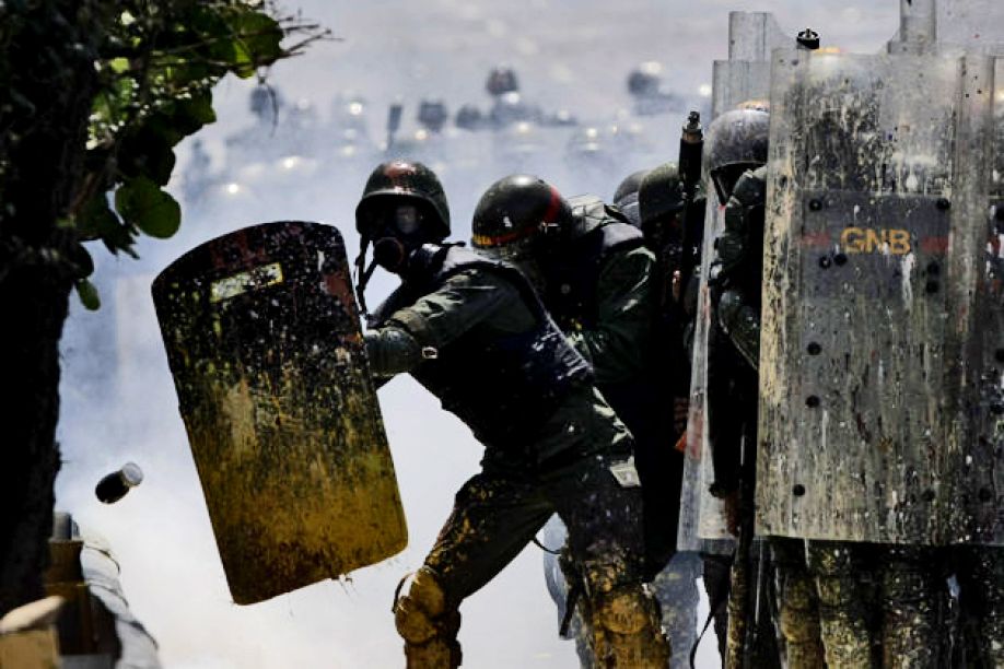 • Στη φωτογραφία δυνάμεις της αστυνομίας της Βενεζουέλα σε... αμυντική διάταξη σε μια από τις... “ειρηνικές” διαδηλώσεις της αντιπολίτευσης της χώρας