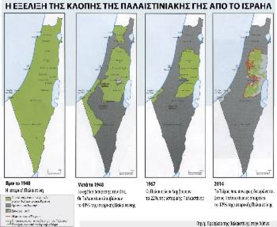 Επί τουλάχιστον επτά δεκαετίες, το δράμα του Παλαιστινιακού λαού συνεχίζεται και οξύνεται δίχως ορατό τέλος στον ορίζοντα καθώς διαδραματίζεται με φόντο τους σφοδρούς ανταγωνισμούς μεταξύ ιμπεριαλιστικών δυνάμεων. Τα ατέρμονα παζάρια που γίνονται, ιδιαίτερα τις τελευταίες δεκαετίες, με το όπλο των ιμπεριαλιστών στον κρόταφο των Παλαιστινίων και σε βάρος του λαού, δυσκολεύουν την εξεύρεση μίας λύσης που θα εξασφαλίσει ανεξάρτητη, κυρίαρχη και βιώσιμη πατρίδα. Η ιστορική εμπειρία, άλλωστε, έχει έως τώρα δείξει ότι όταν οι ιμπεριαλιστές φορούν το προσωπείο του «ειρηνοποιού» το πράττουν για να διασφαλίσουν τα συμφέροντα των μονοπωλίων τους.